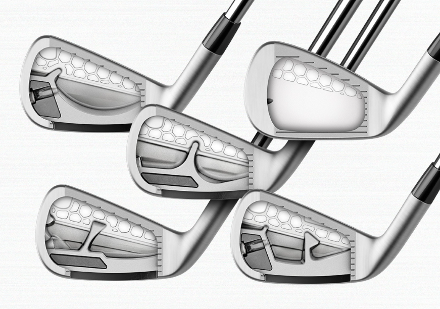 예를 들어 번호가 낮은 아이언일수록 무게중심을 낮게 설계하여 쉽게 공을 띄울 수 있도록 하였으며, 숏아이언은 스핀을 향상시켜 골퍼가 원하는 대로 공략하기 수월하게 설계되어 있습니다.