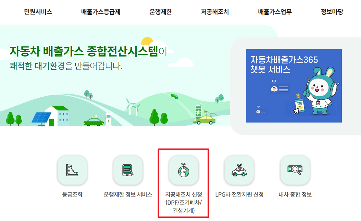 자동차 배출가스 등급제 홈페이지에서 저공해 조치 선택.